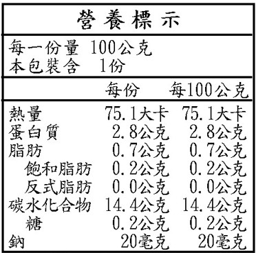 原料:大骨湯(水.豬骨(臺灣)).米.南瓜.黑豬肉(臺灣).紅蘿蔔.胚芽米.大麥仁.燕麥(全粒燕麥片.香草香料).芡實.鹽。