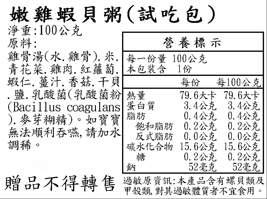嫩雞蝦貝粥-100g(效期2026/01/20)