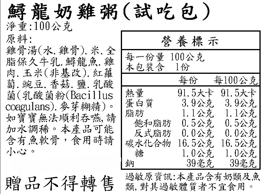 鱘龍奶雞粥-100g(效期2026/01/20)